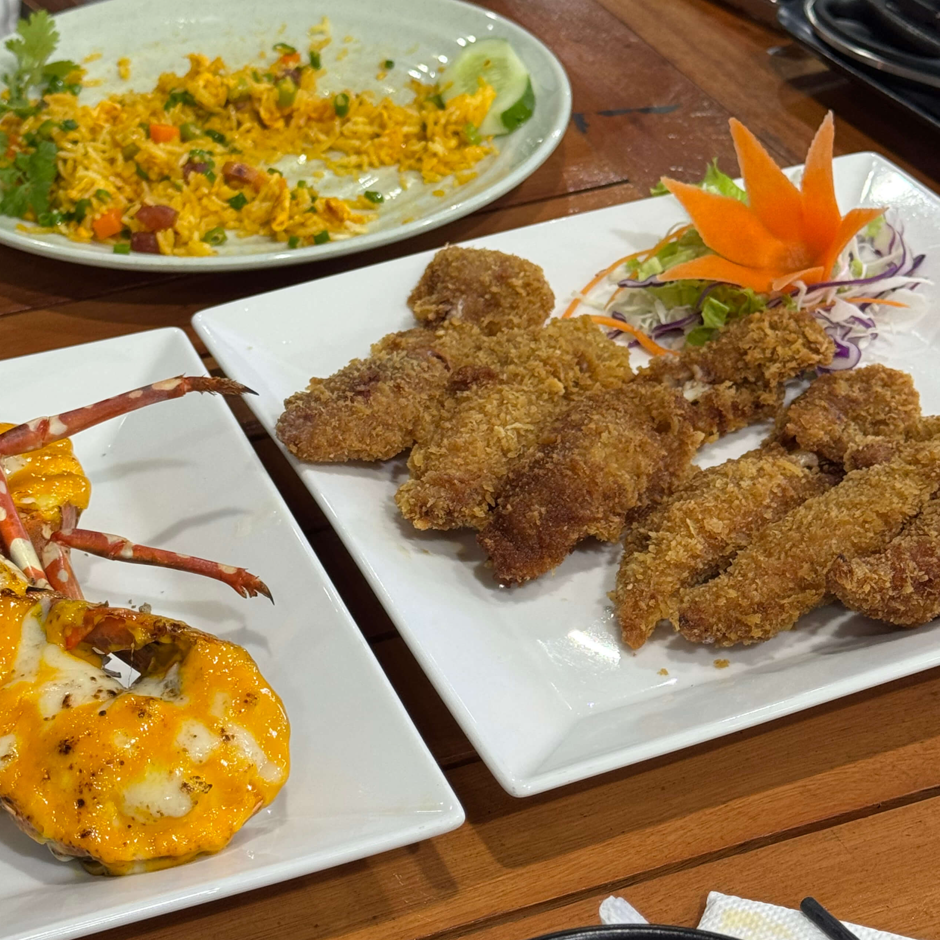 아삭하게 볶아져 나온 모닝글로리와 볶음밥은 모든 음식과 함께 먹기 잘 어울렸고 오징어 튀김은 먹다가 조금 느끼했지만 대체로 한국인의 입맛에 잘 맞았습니다.